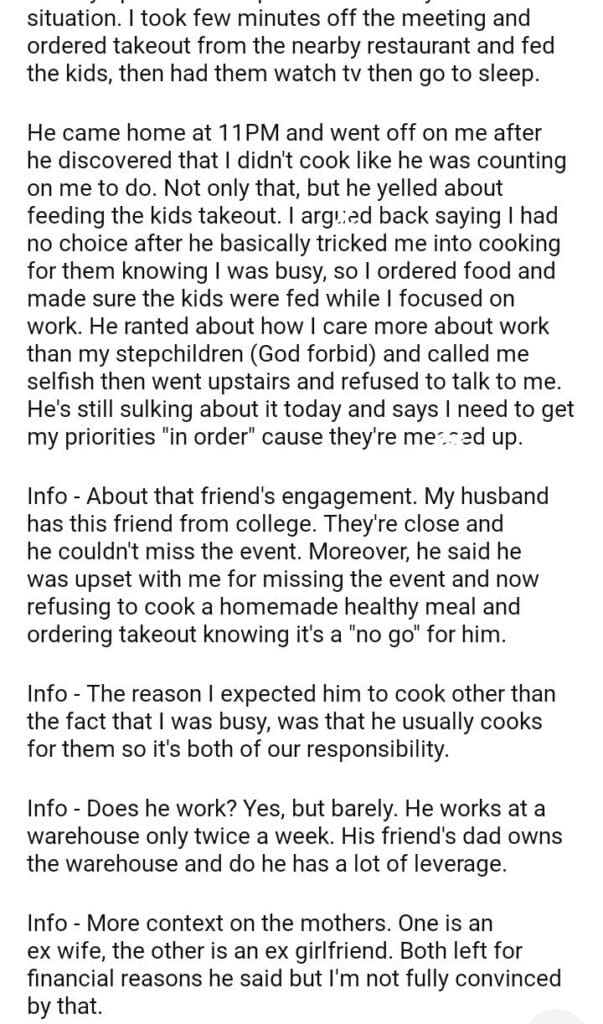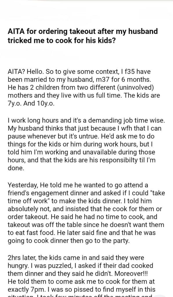 AITA after my husband to cook for his kids?