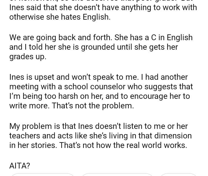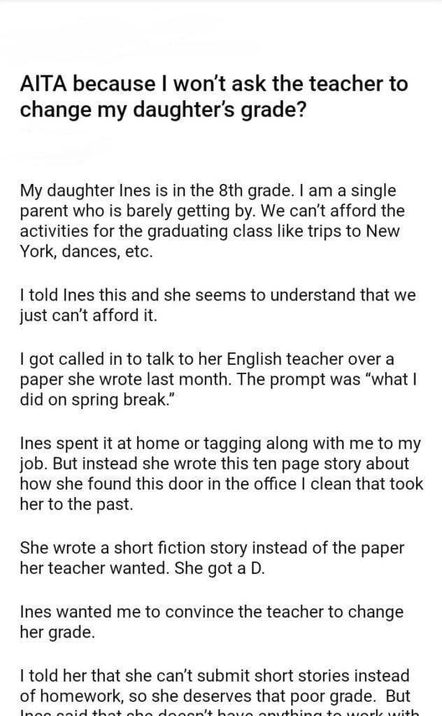 AITA because I won’t ask the teacher to change my daughter’s grade?