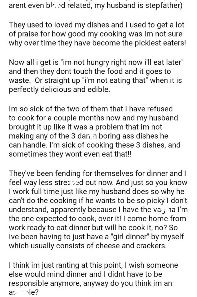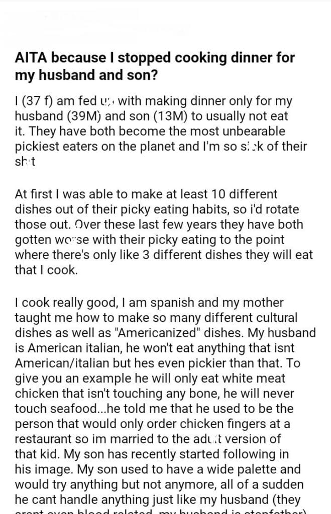 AITA cooking dinner for my husband and son?