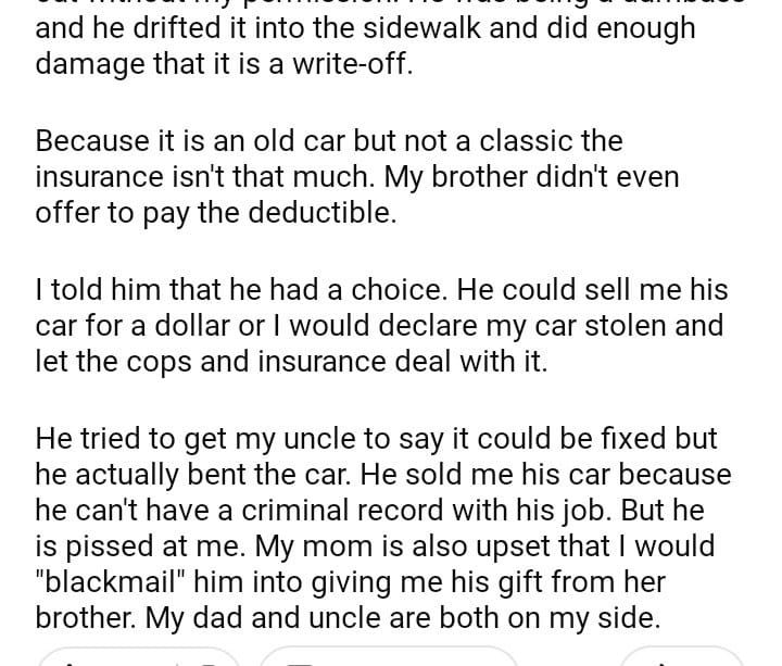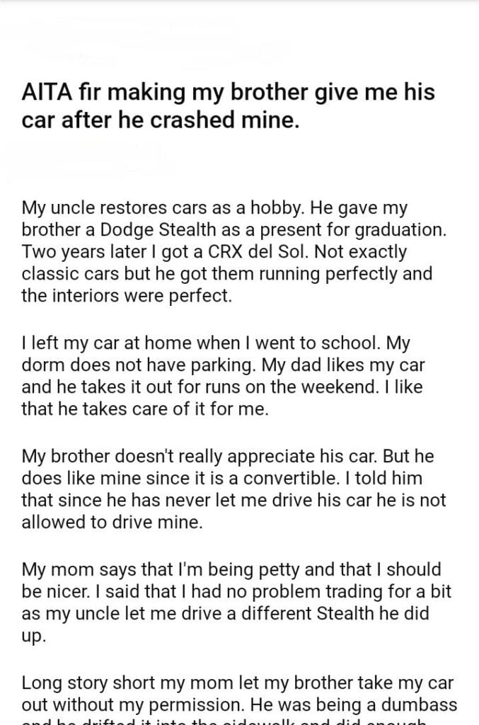 AITA fir making my brother give me his car