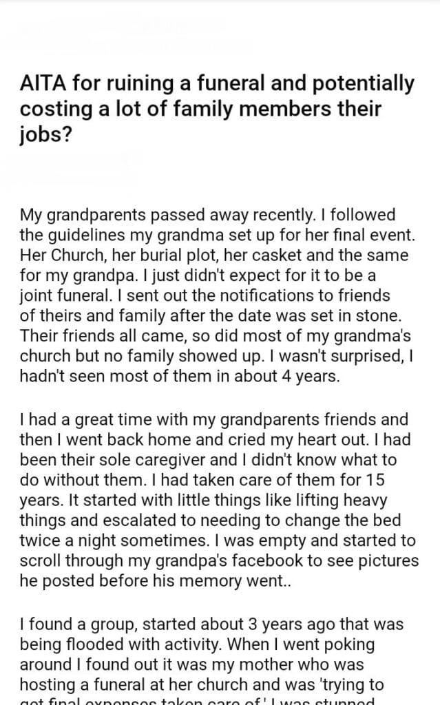 AITA for a funeral and potentially costing a lot of family members their jobs?