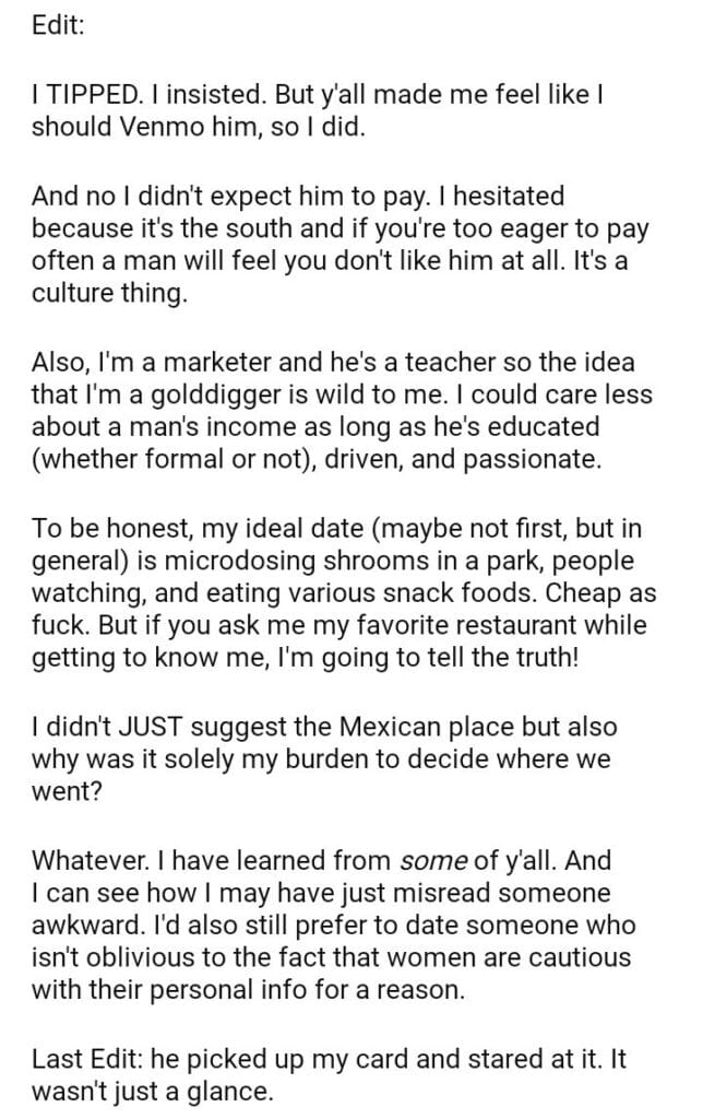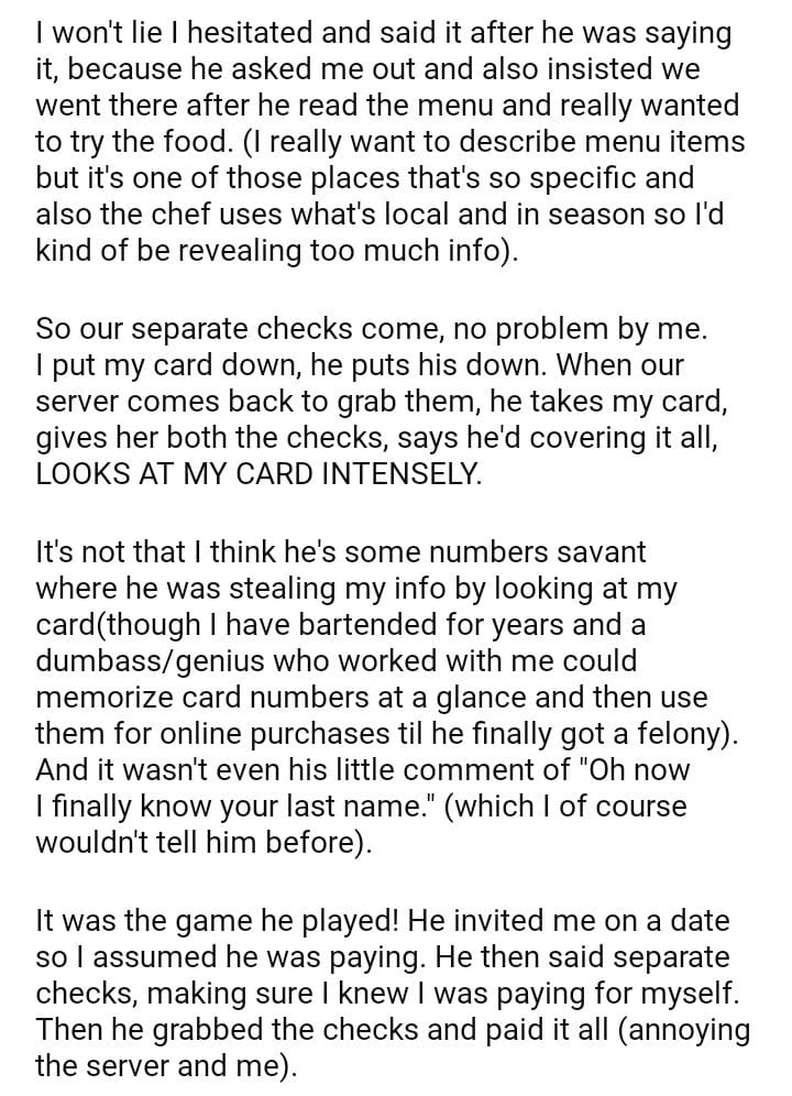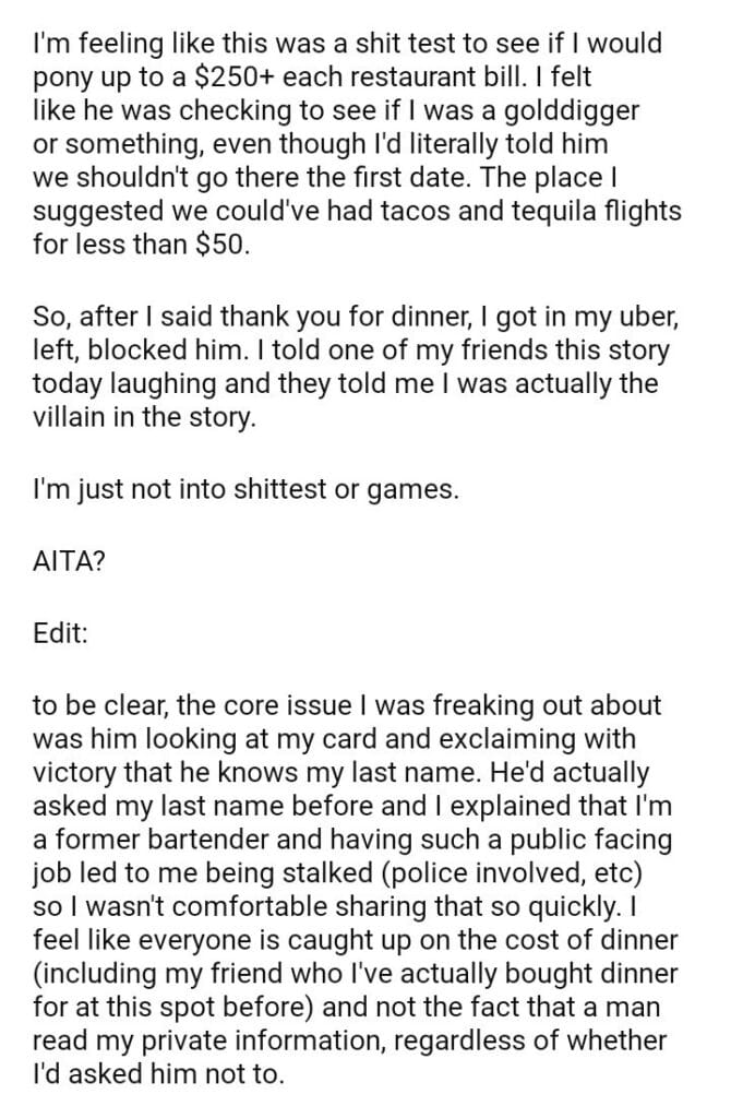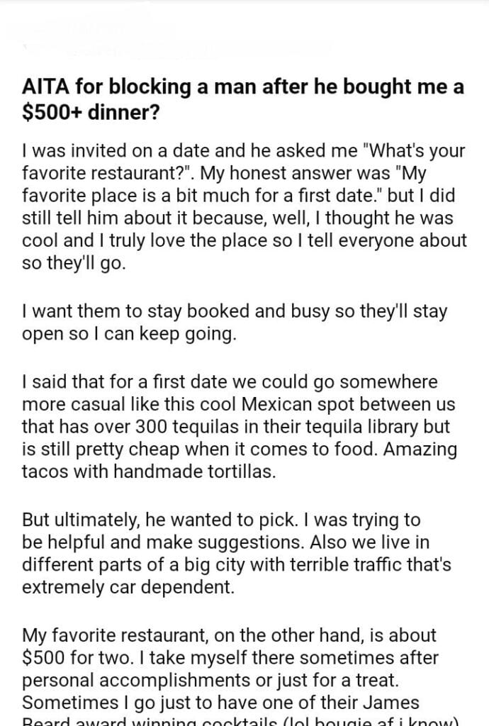 AITA for a man after he bought me a $500+ dinner?