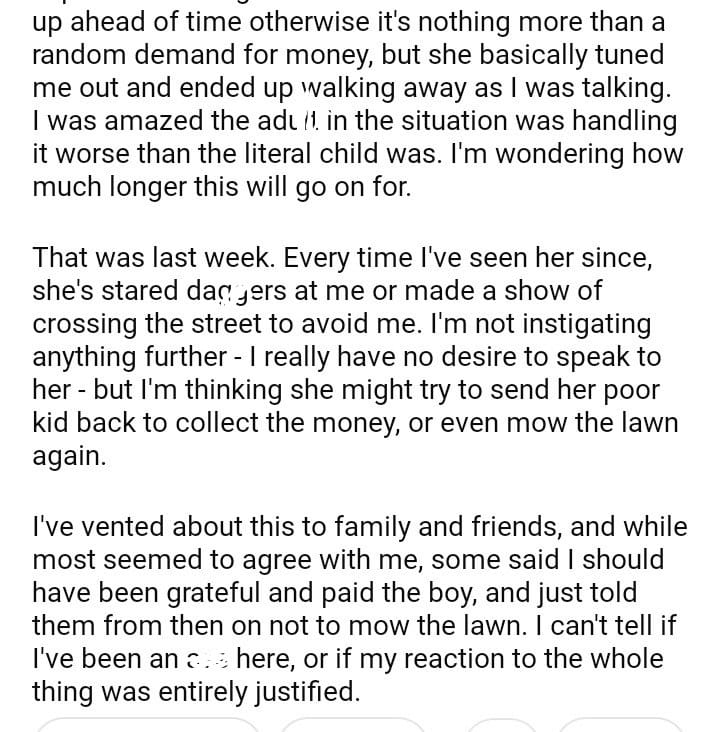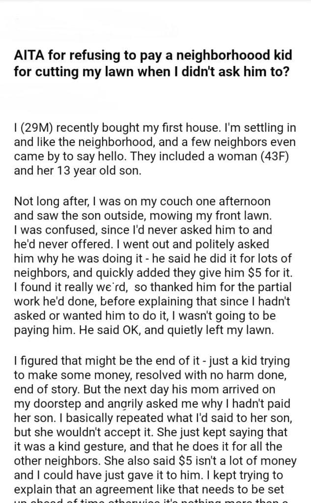 AITA for a neighborhoood kid when I didn’t ask him to?