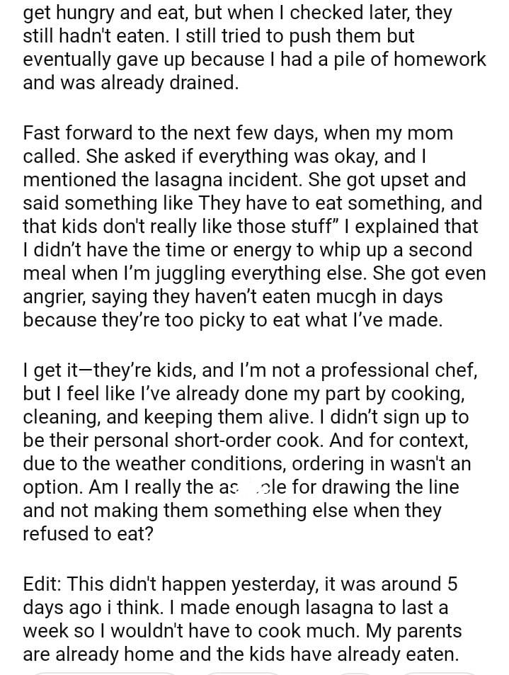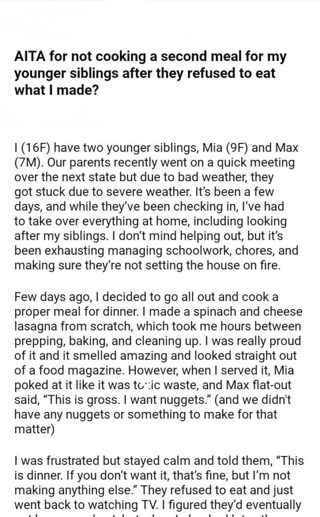 AITA for a second meal for my siblings