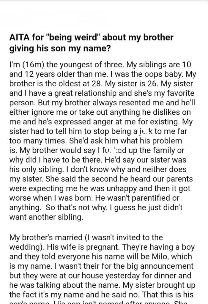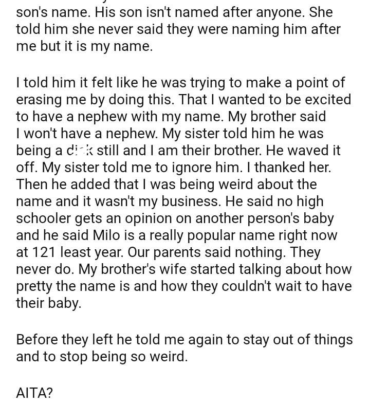 AITA for about my brother giving his son my name?