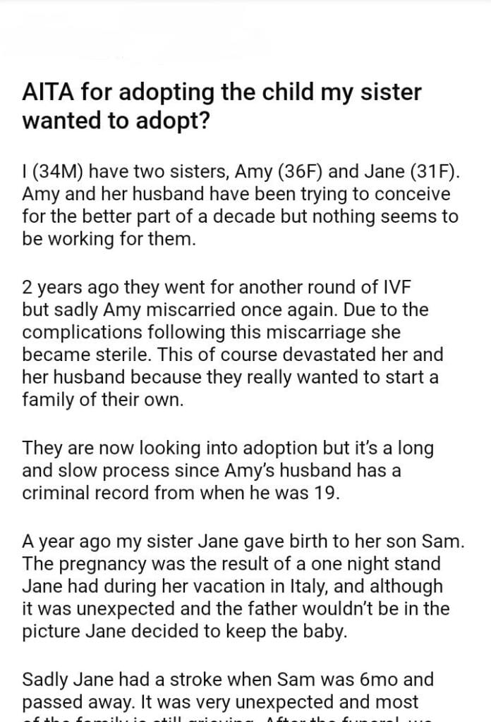 AITA for adopting the child my sister wanted to adopt?