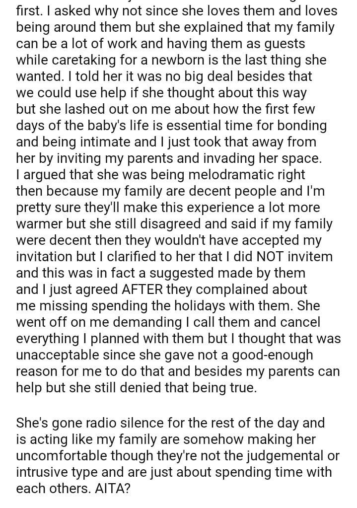 AITA for agreeing to have my family visit for a week after my wife gives birth?