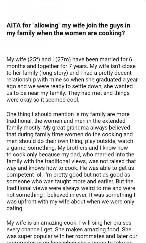 AITA for “allowing” my wife join the guys in my family