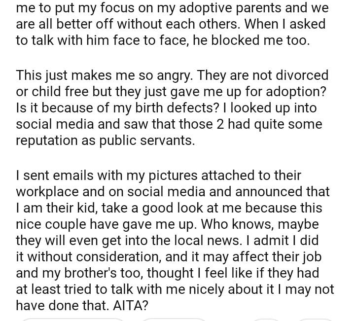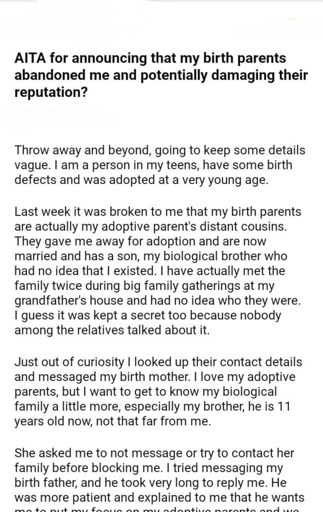 AITA for announcing that my birth parents