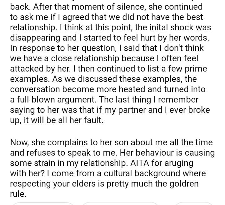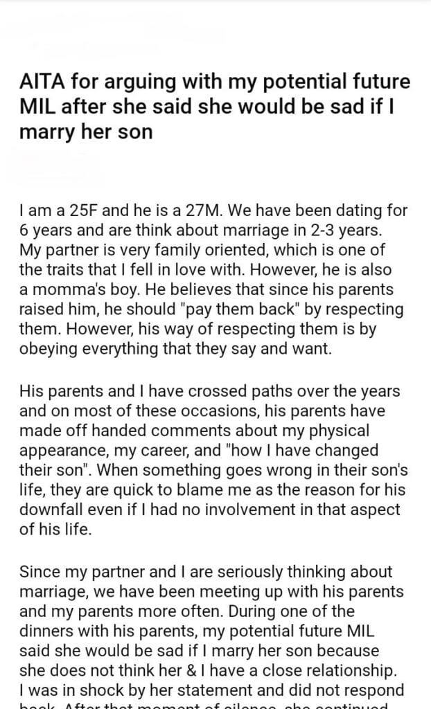 AITA for arguing with my potential future MIL