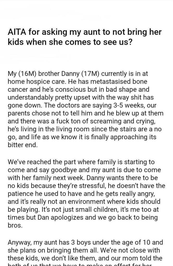 AITA for asking my aunt to not bring her kids when she comes to see us?