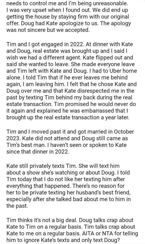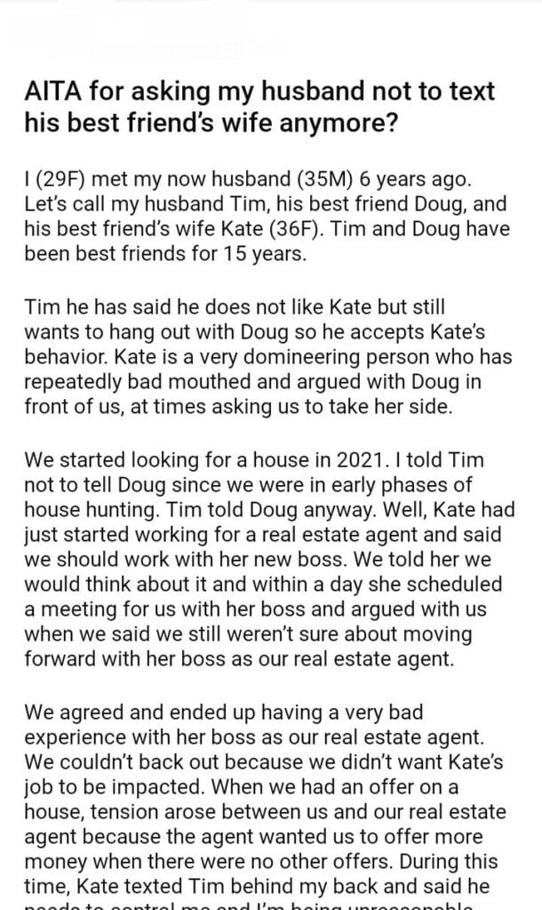 AITA for asking my husband not to text his best friend’s wife anymore?