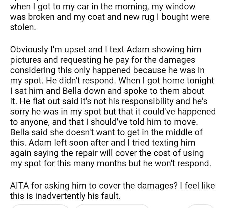 AITA for asking my roommate’s boyfriend to pay for my car repairs?