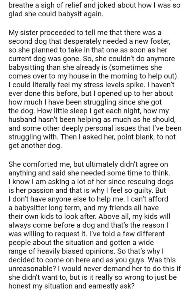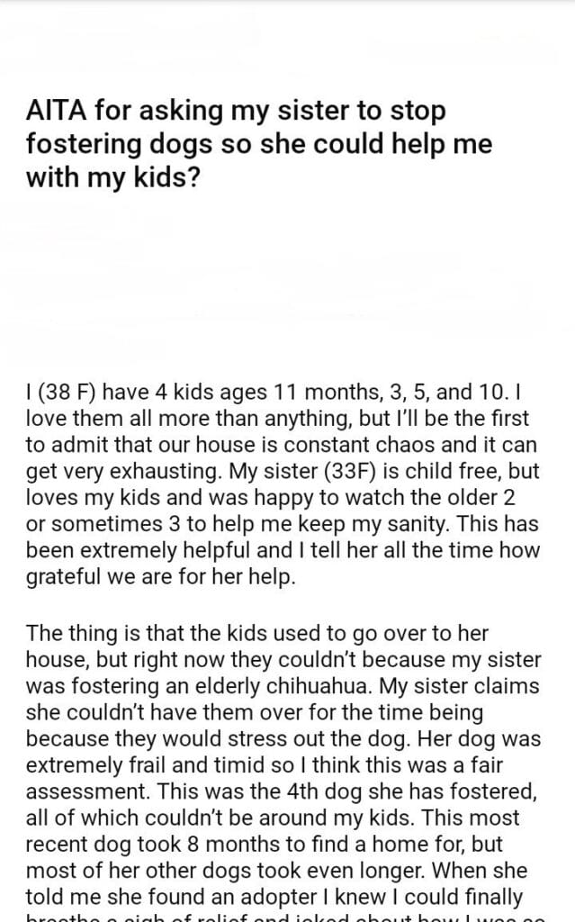 AITA for asking my sister to stop fostering dogs