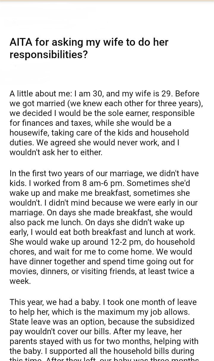AITA for asking my wife to do her responsibilities?