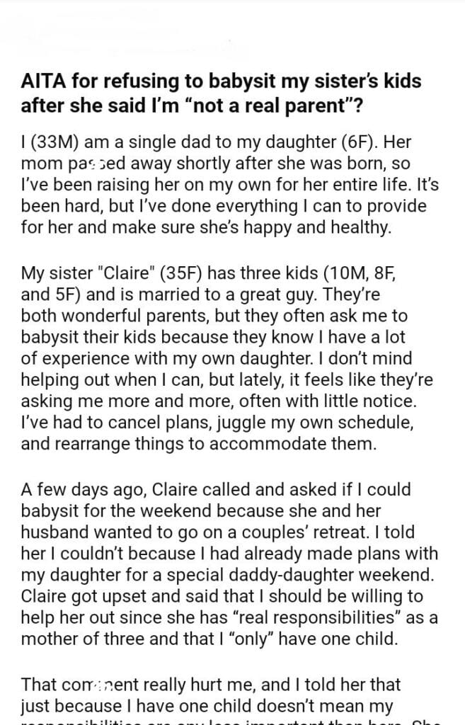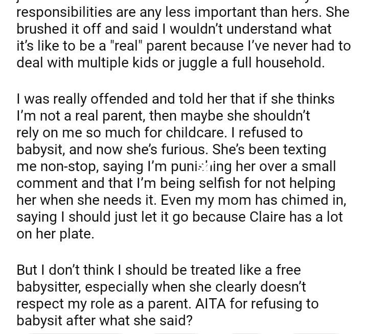 AITA for babysit my sister’s kids after what she said