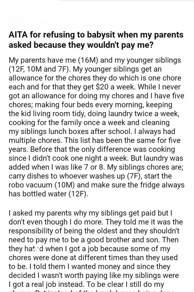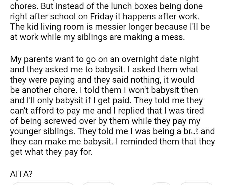 AITA for babysit when my parents asked