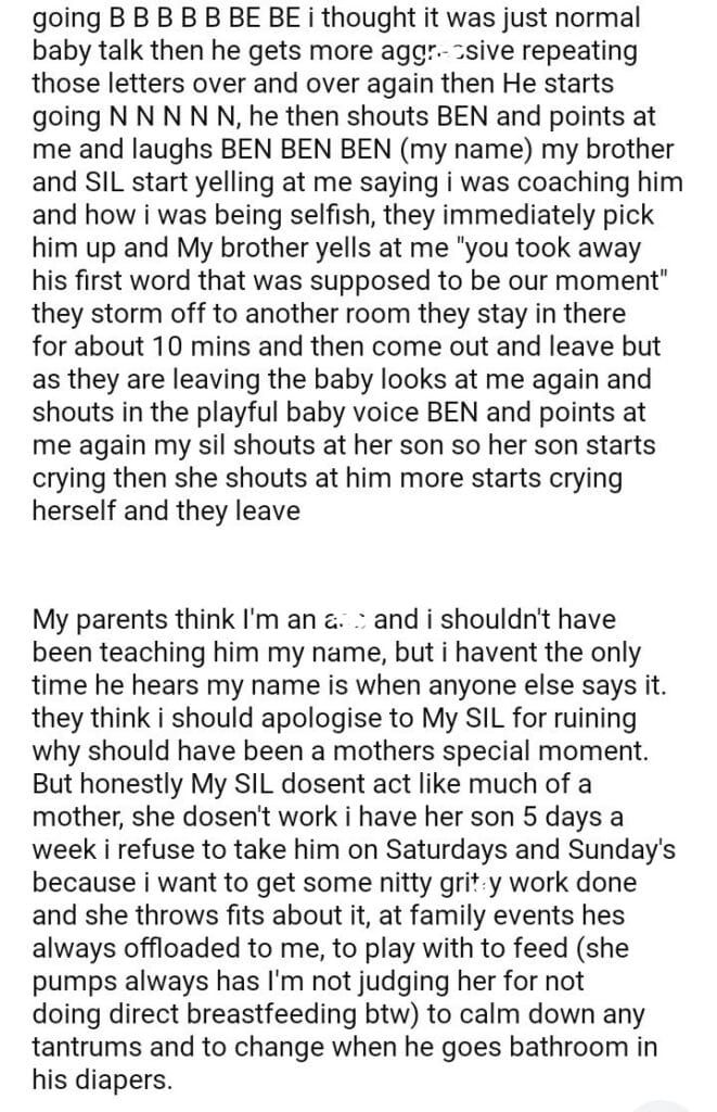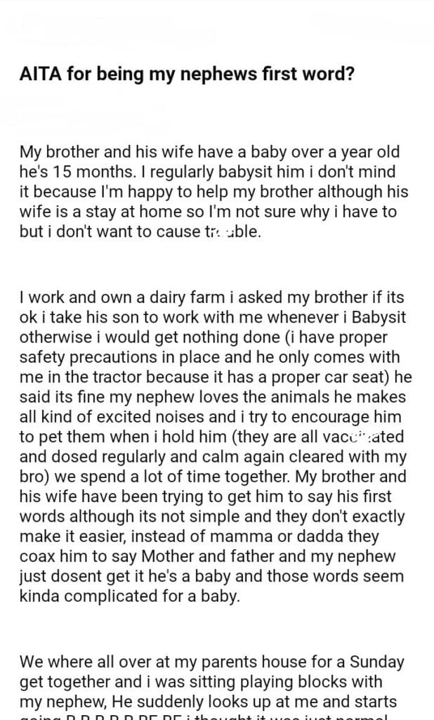 AITA for being my nephews first