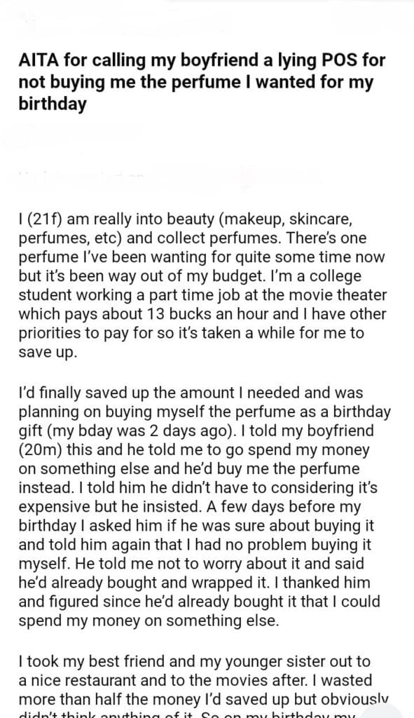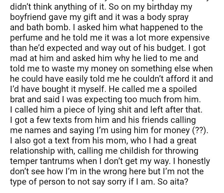 AITA for calling my boyfriend a lying for not buying me the perfume