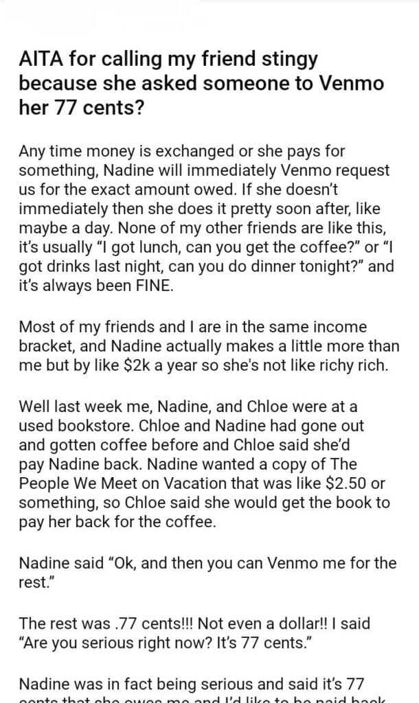 AITA for calling my friend because she asked someone for 77 cents?