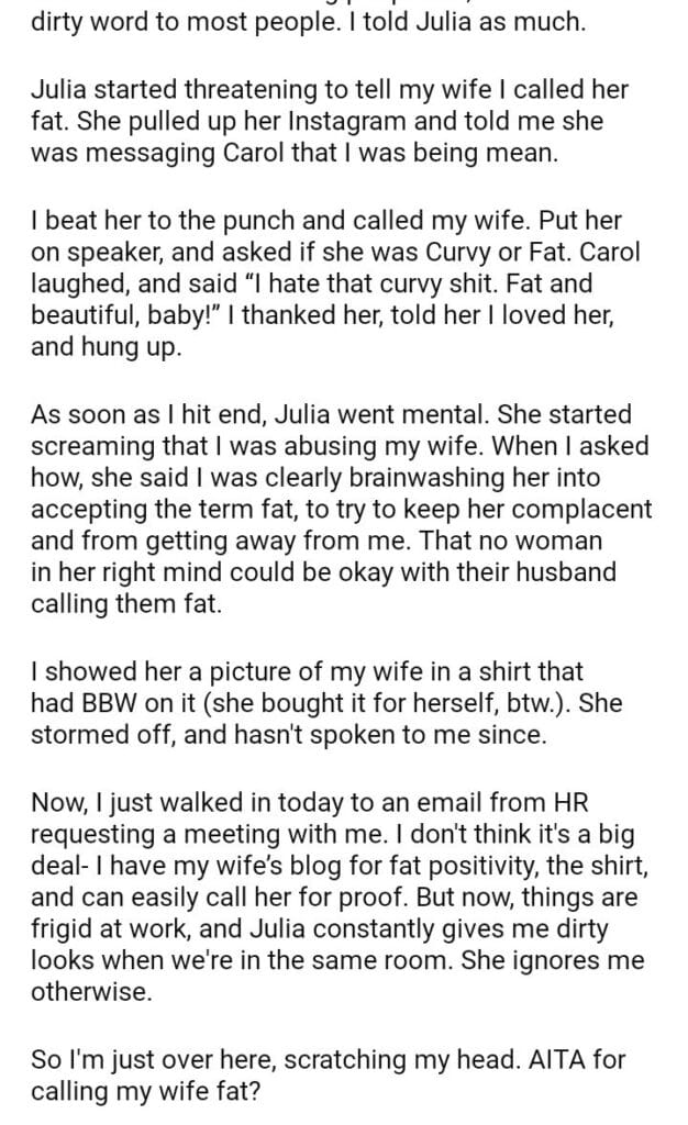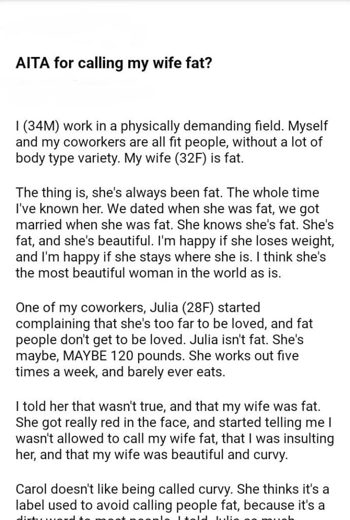 AITA for calling my wife