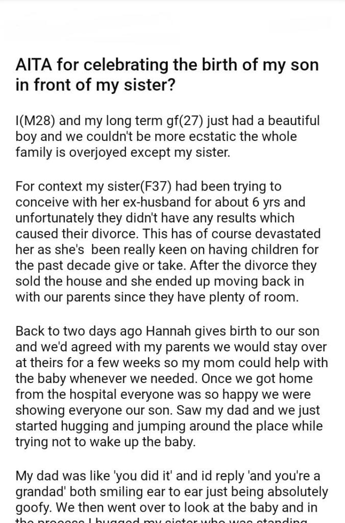 AITA for celebrating the birth of my son in front of my sister?