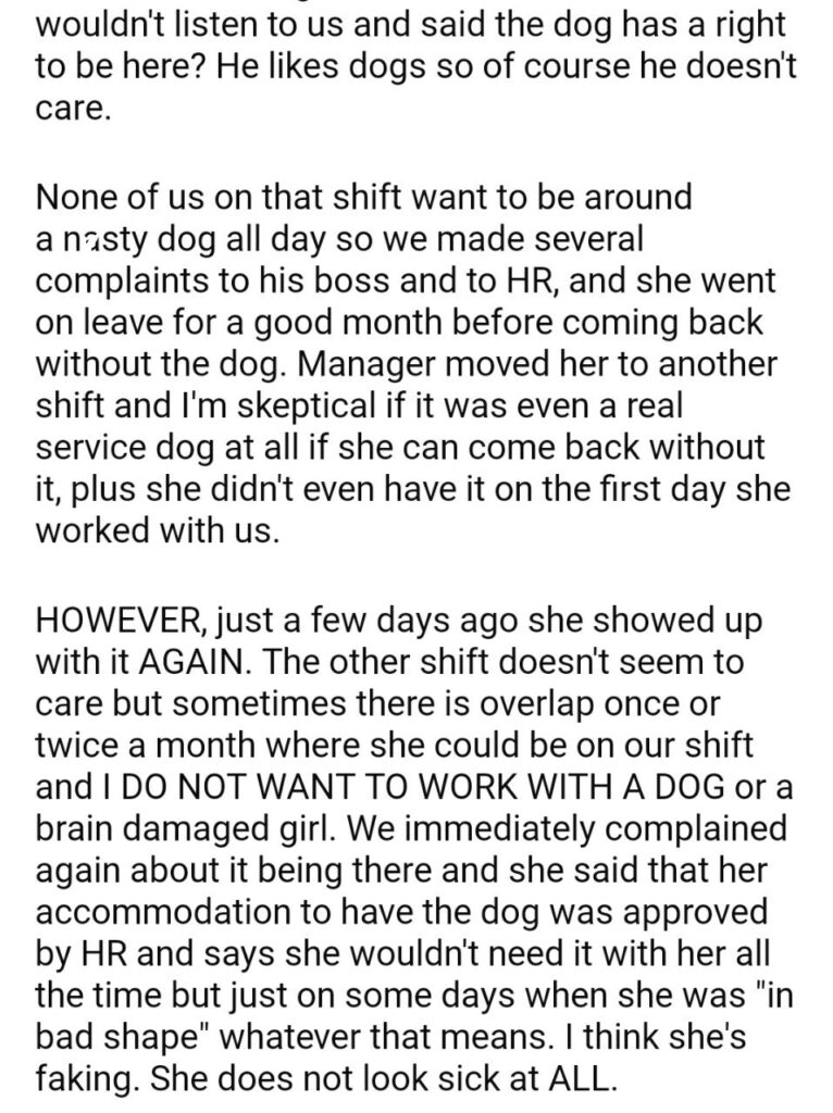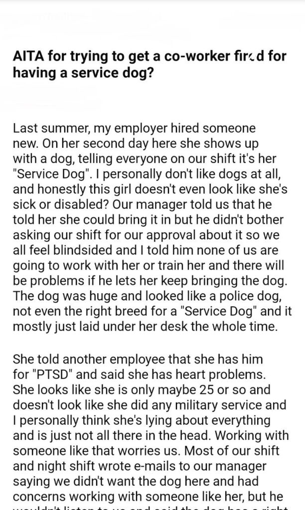 AITA for co-worker service dog?