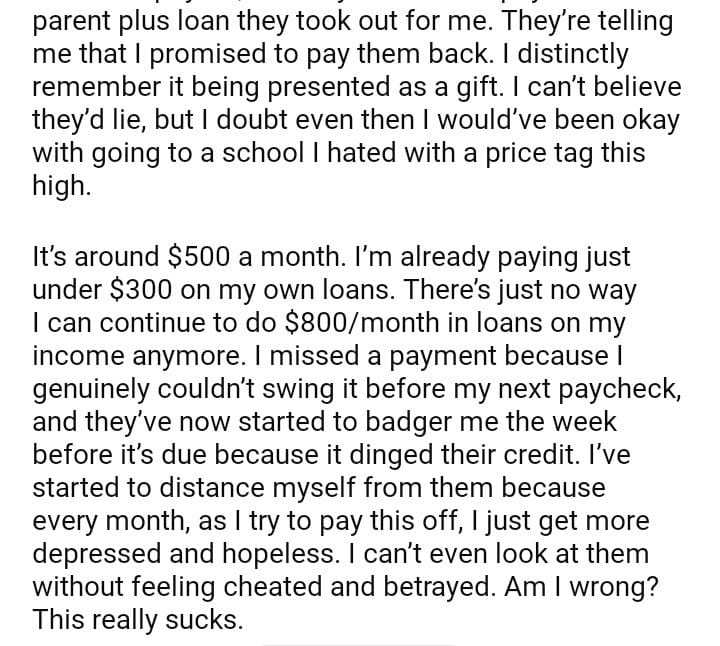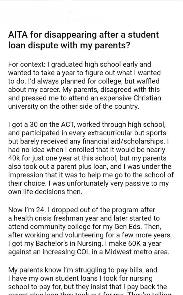 AITA for disappearing after a student loan