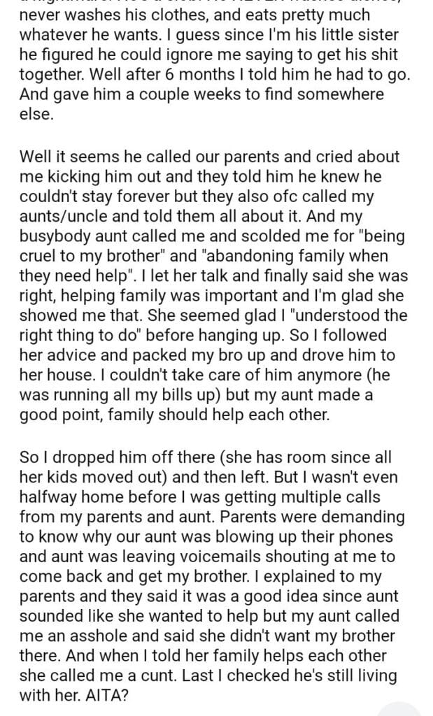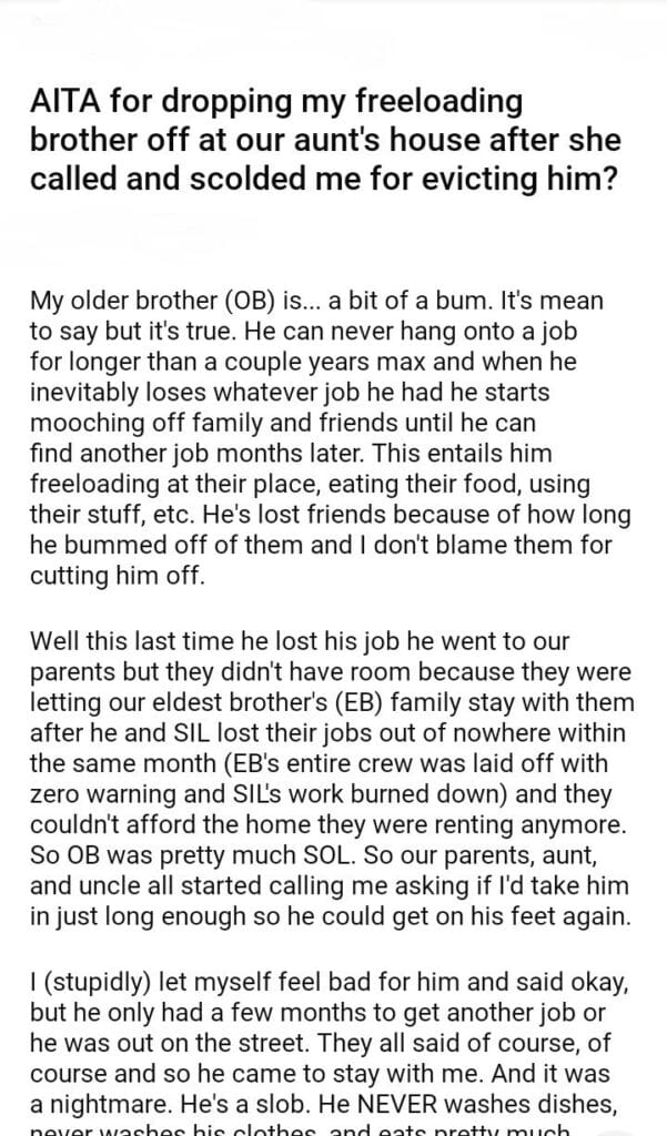 AITA for dropping my freeloading brother off at our aunt’s house