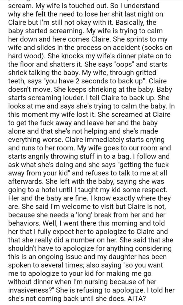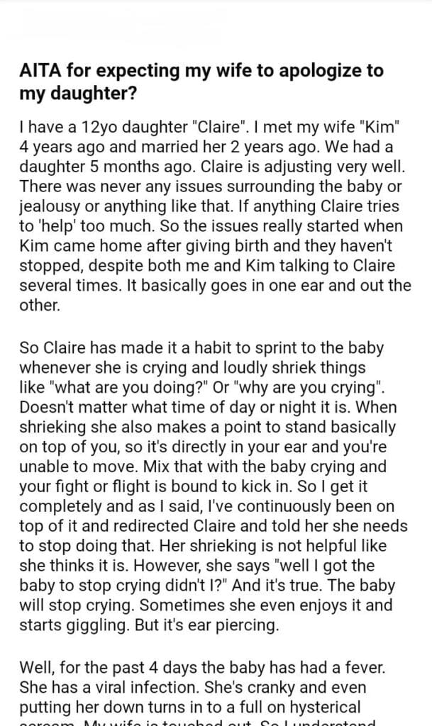 AITA for expecting my wife to apologize to my daughter?
