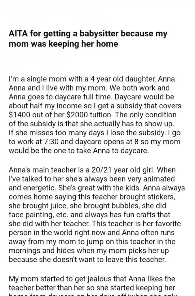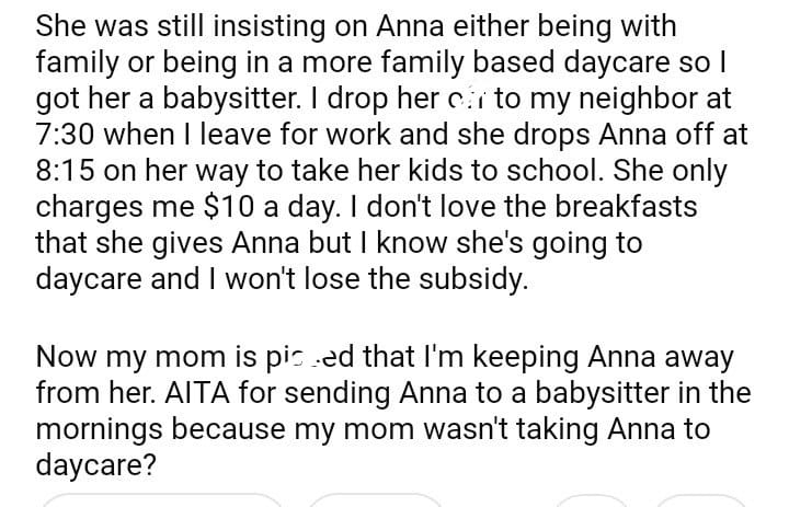 AITA for getting a babysitter because my mom