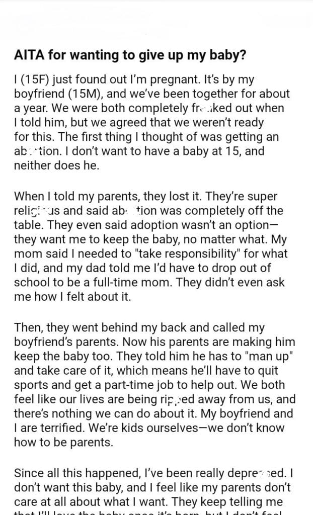 AITA for give my baby?