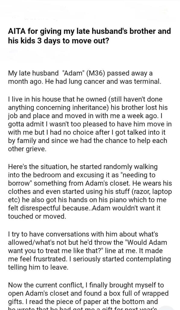 AITA for giving my husband’s brother and his kids 3 days to move out?