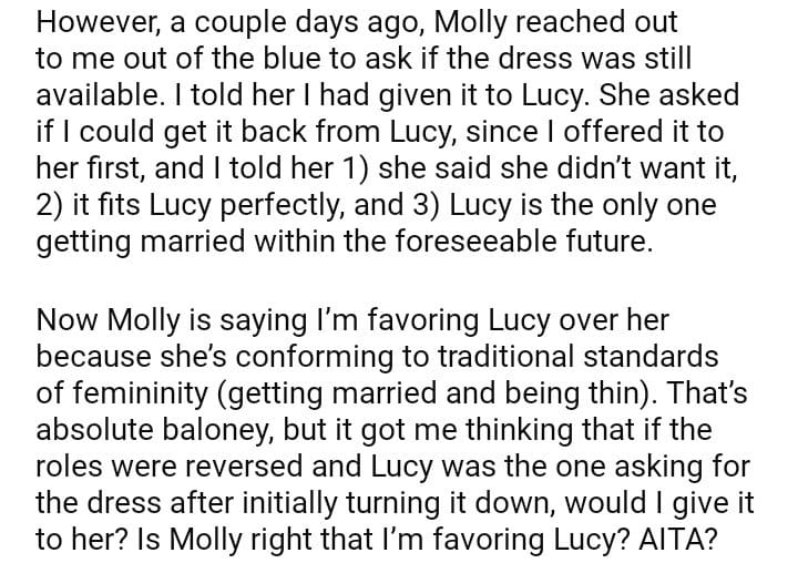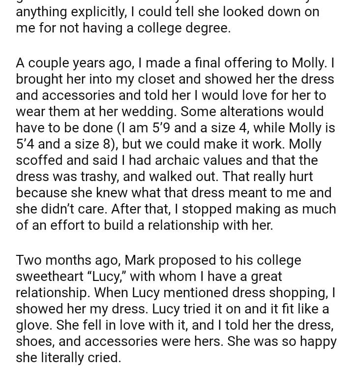 AITA for giving my wedding dress to my future daughter-in-law instead of my stepdaughter?