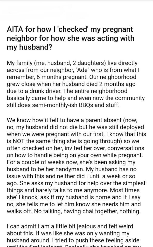 AITA for how I ‘checked’ my pregnant neighbor