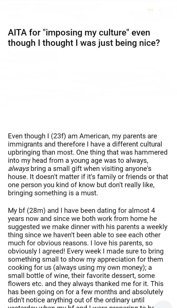 AITA for “imposing my culture” even though I thought I was just being nice?