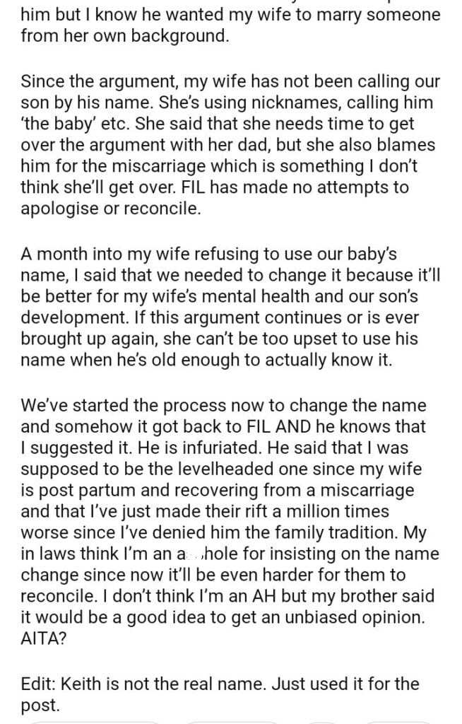 AITA for insisting we change our son’s name?