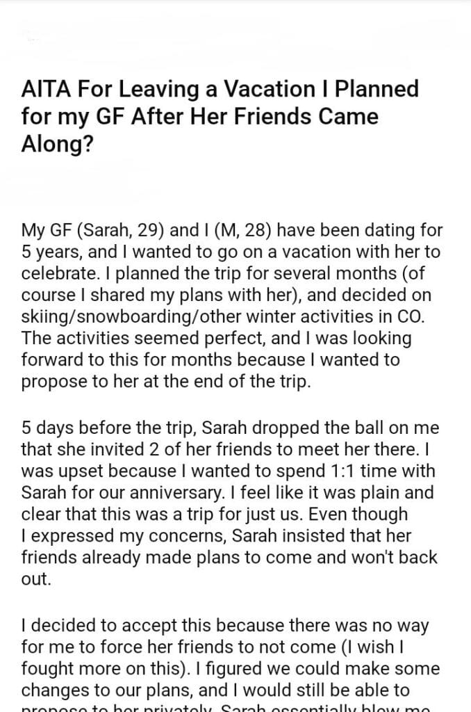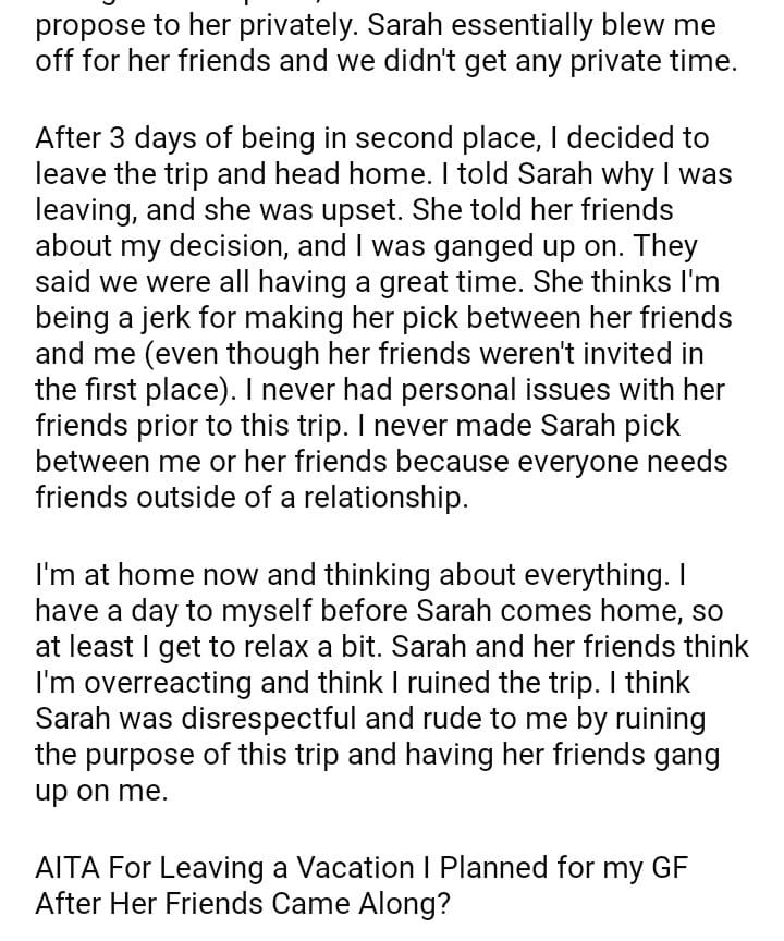AITA For Leaving a Vacation I Planned for my GF After Her Friends Came Along?