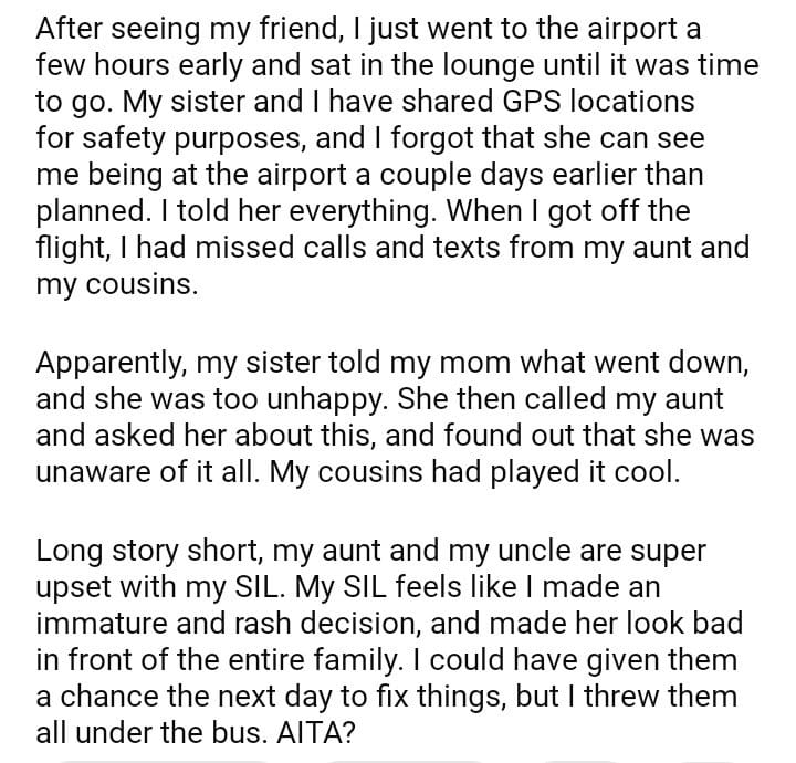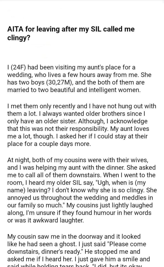 AITA for leaving after my SIL called me