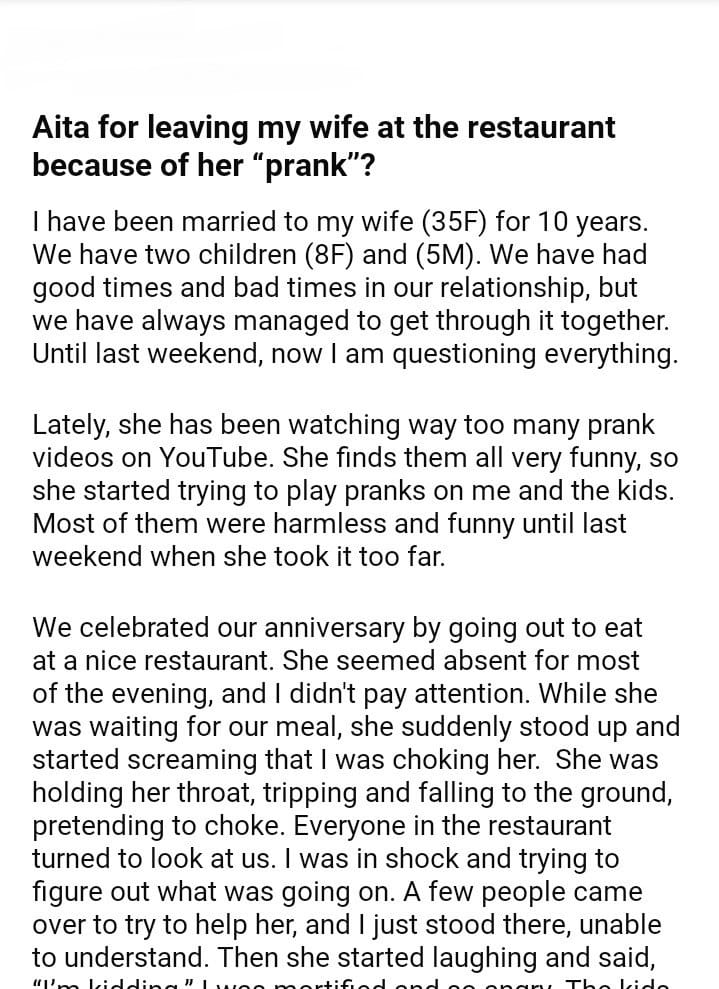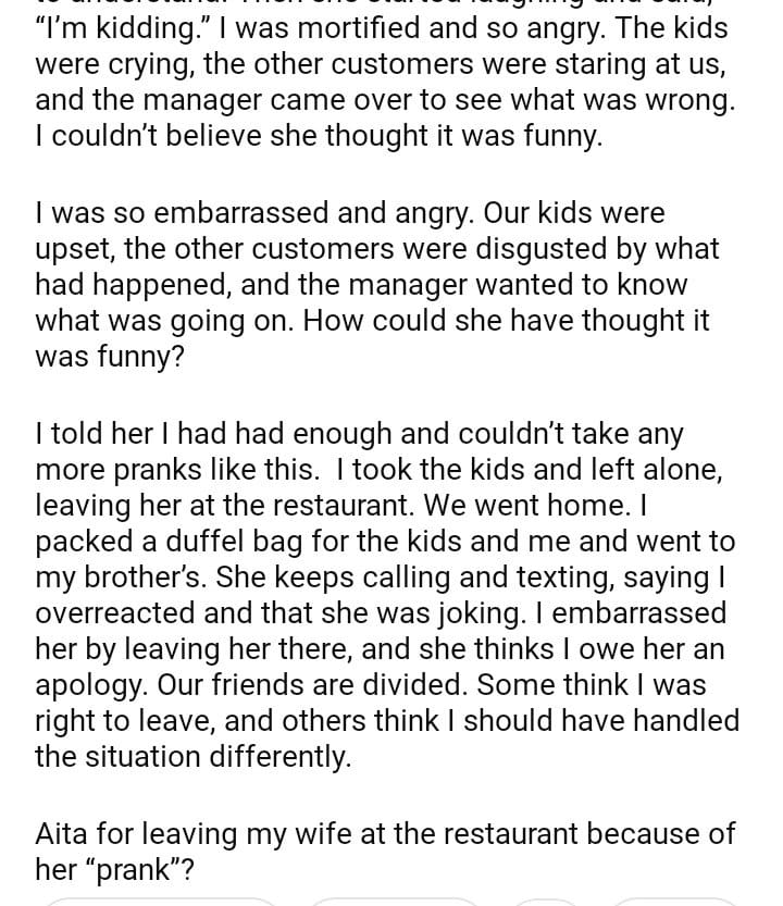 Aita for leaving my wife at the restaurant