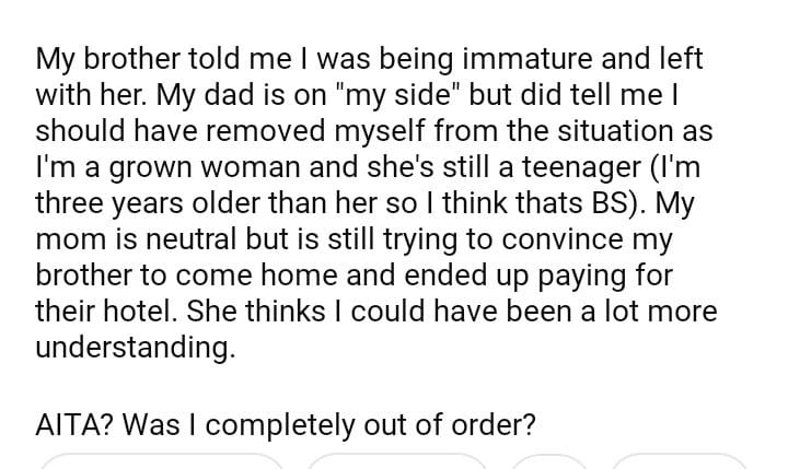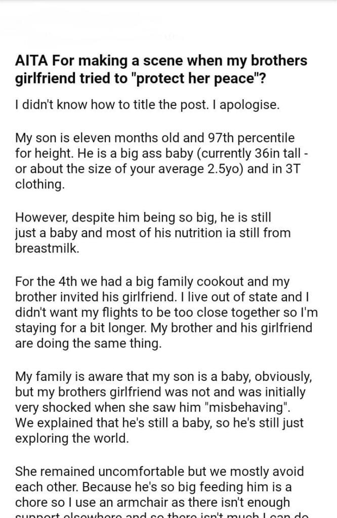 AITA For making a scene when my brothers girlfriend tried to “protect her peace”?
