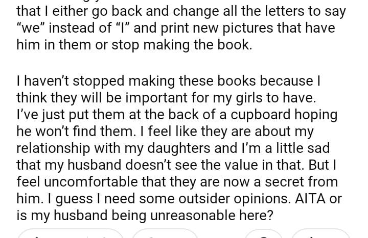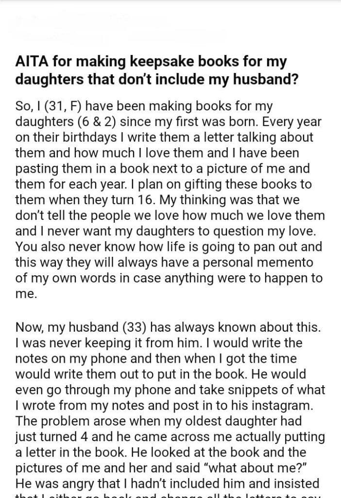 AITA for making keepake books for my daughters