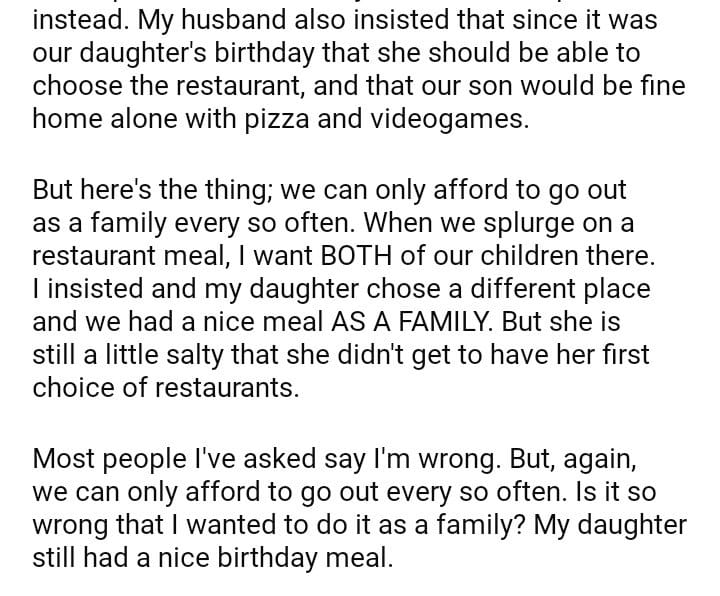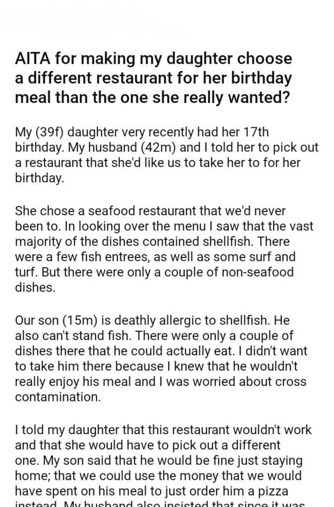 AITA for making my daughter choose a different restaurant for her birthday meal