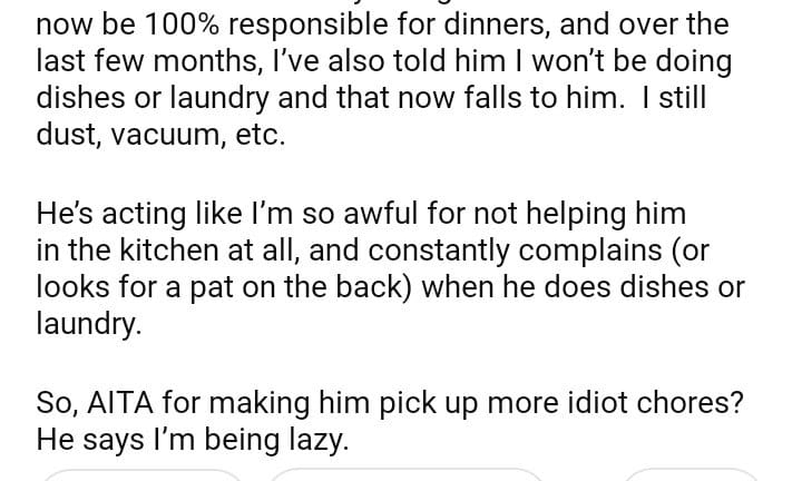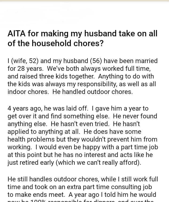 AITA for making my husband take on all of the household chores?