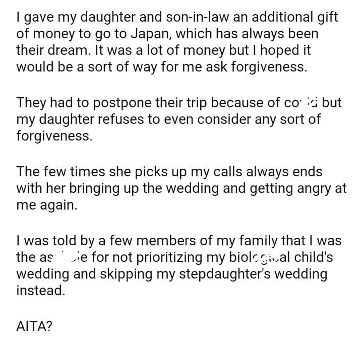 AITA for most of my daughter’s wedding