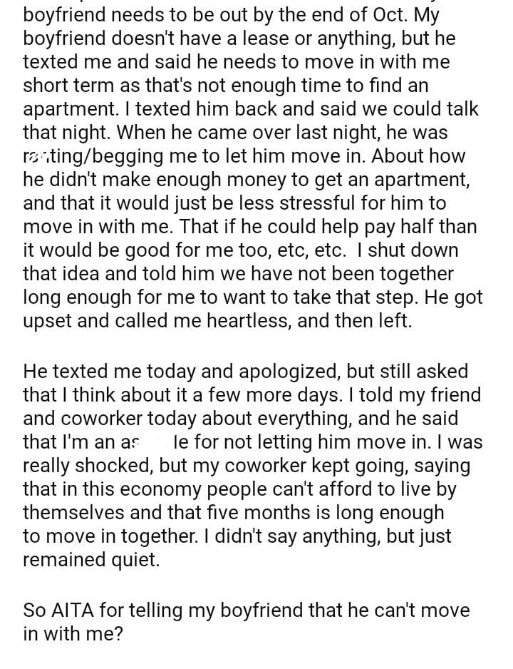 AITA for my boyfriend that he can’t move