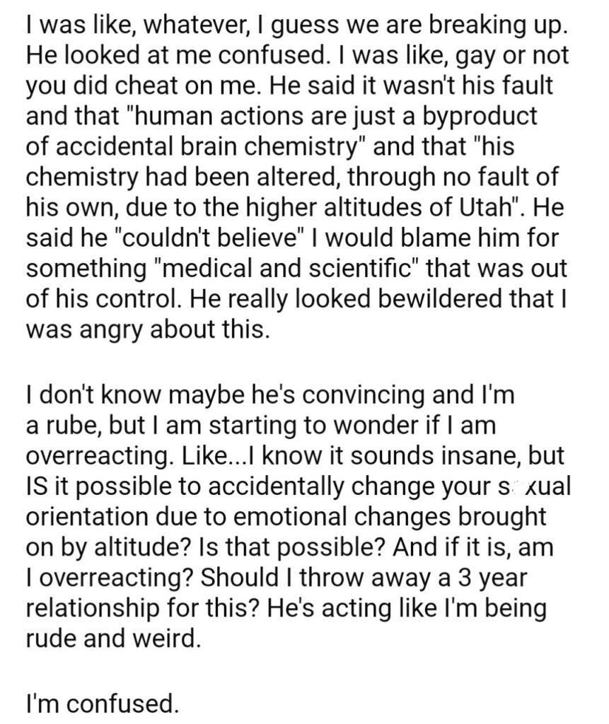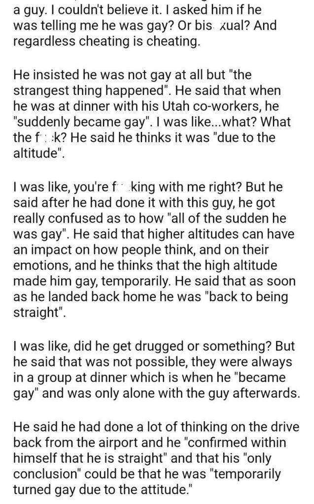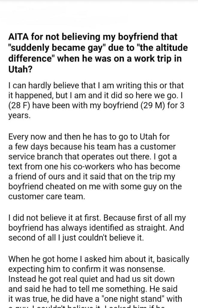 AITA for my boyfriend when he was on a work trip in Utah?