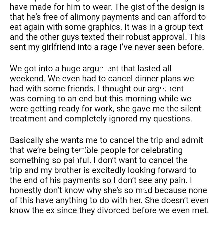 AITA for my brother an end of alimony party