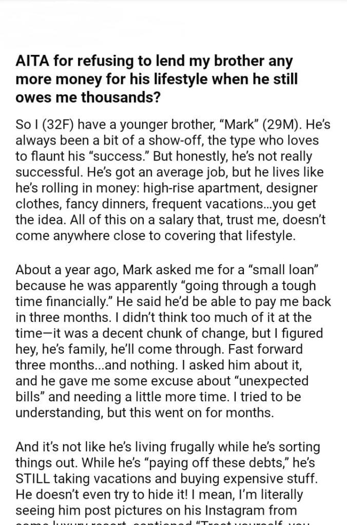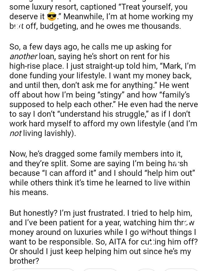 AITA for my brother any more money for his lifestyle