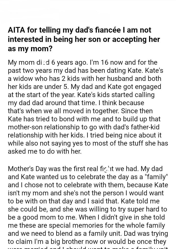 AITA for my dad’s fiancée as my mom?